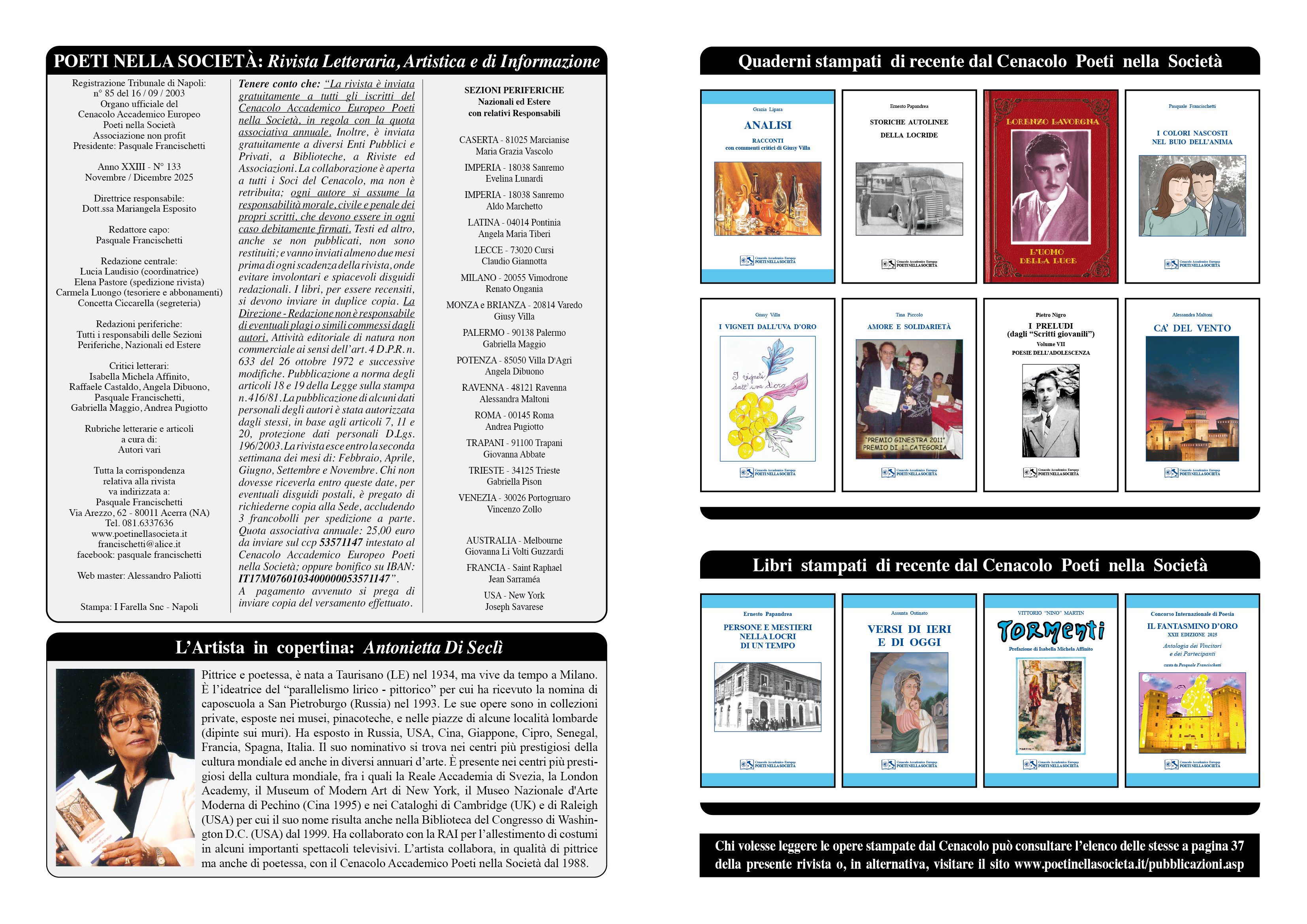 "La rivista è inviata gratuitamente a tutti gli iscritti del Cenacolo Accademico Europeo Poeti nella Società, in regola con la quota associativa annuale.